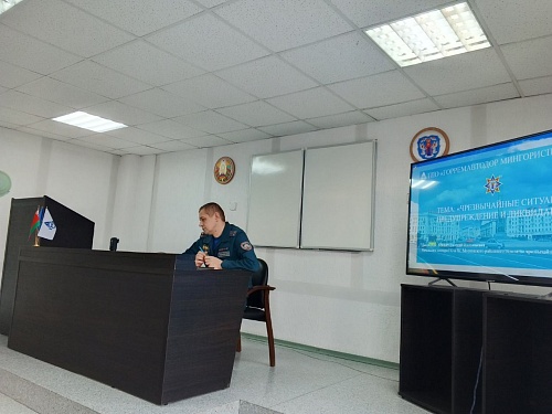 Сегодня прошла профилактическая встреча трудового коллектива ГПО "Горремавтодор Мингорисполкома" с начальником сектора ГО и ЧС Московского районного отдела по чрезвычайным ситуациям Манько Евгением Анатольевичем