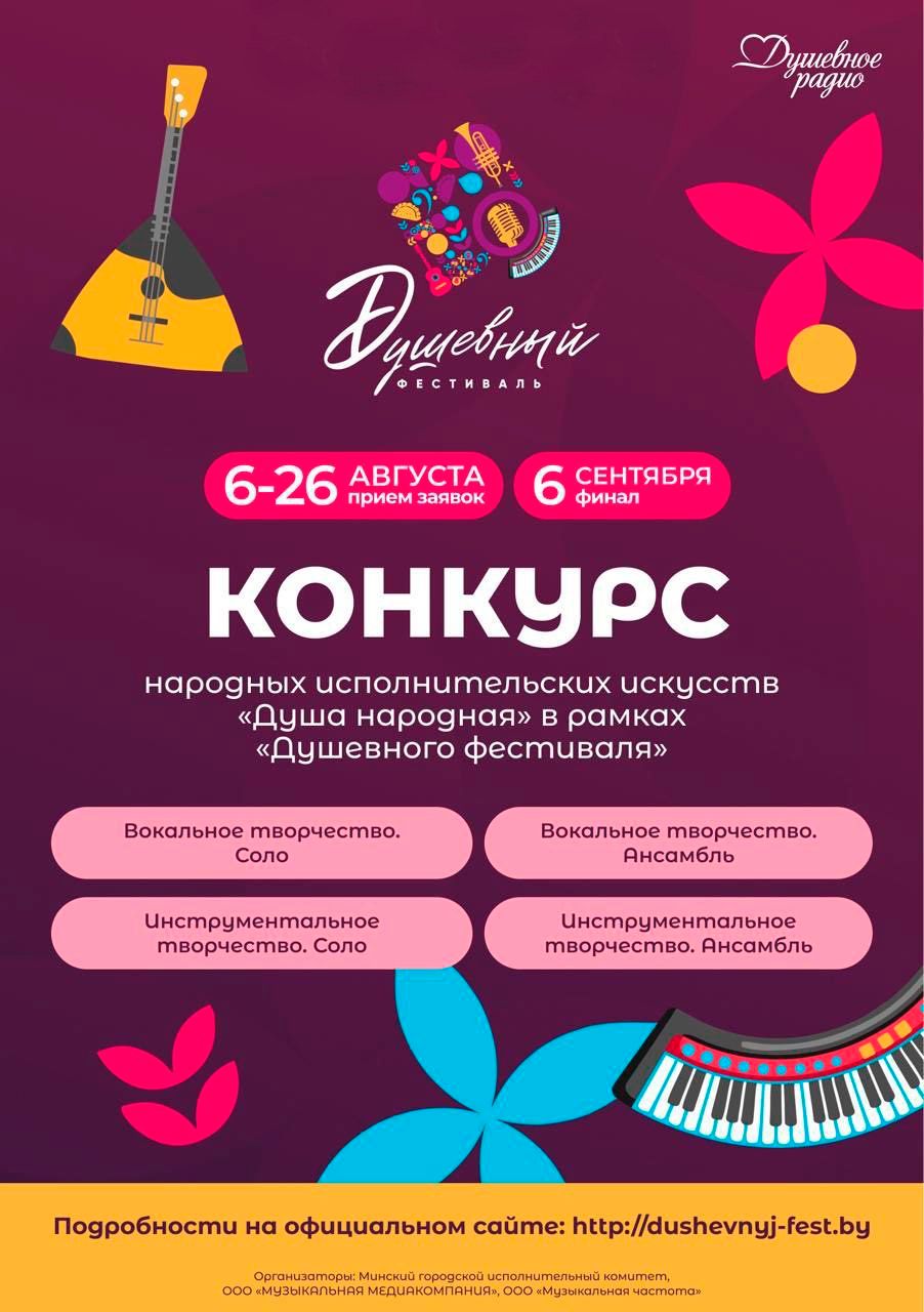 Заявки принимаются с 6 по 26 августа на электронный адрес: konkursdushanarod@gmail.com.