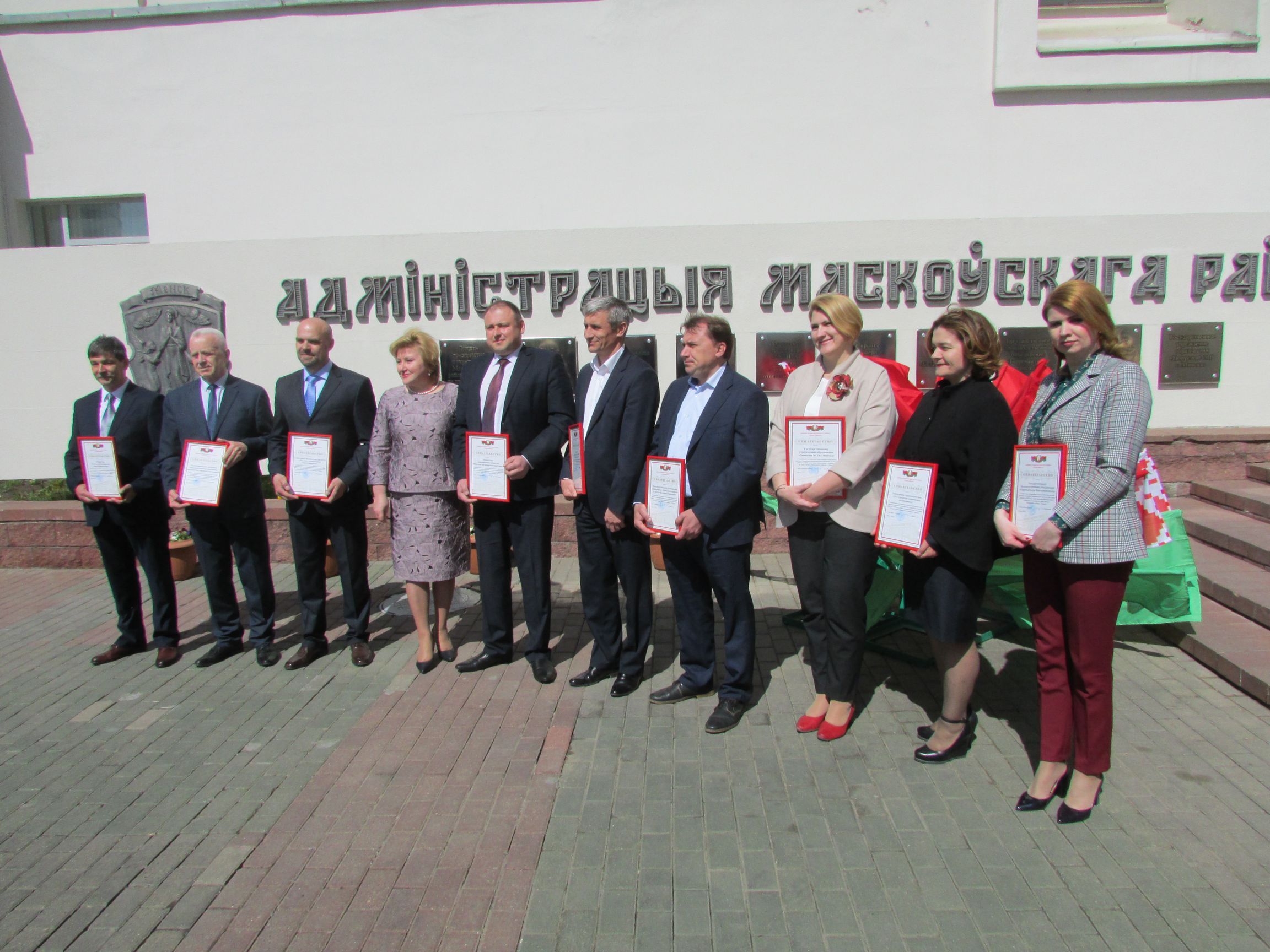 29 апреля, накануне Праздника труда, состоялась торжественная церемония открытия доски Почета Московского района г. Минска. Организациям, достигнувшим высоких показателей в социально-экономическом развитии, были вручены памятные свидетельства первым заместителем главы администрации Московского района г. Минска Татьяной Ивановной Колядко.