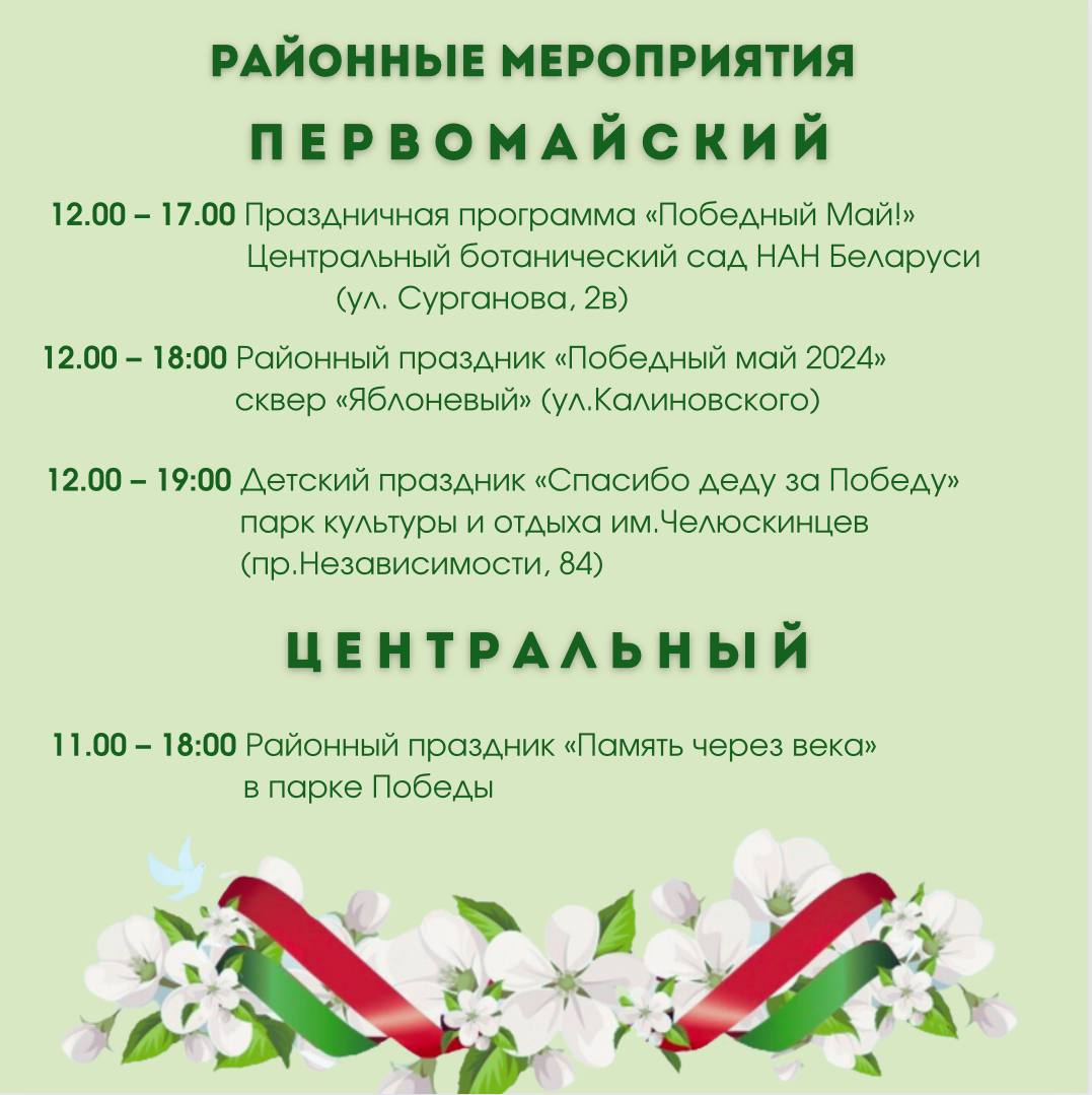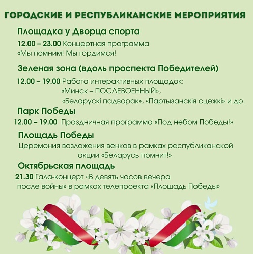 Программа основных праздничных мероприятий 9 мая в Минске