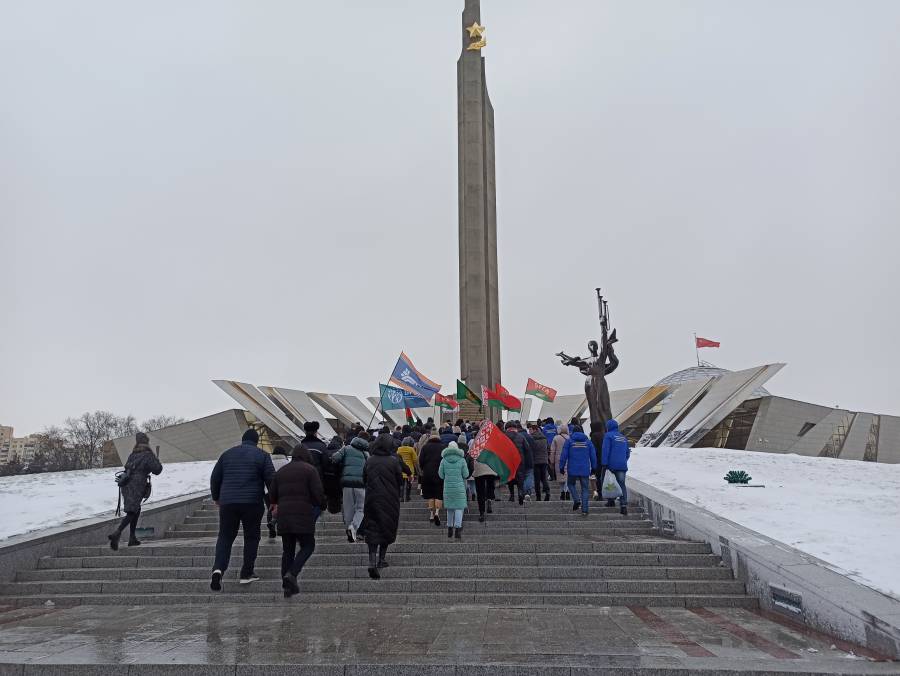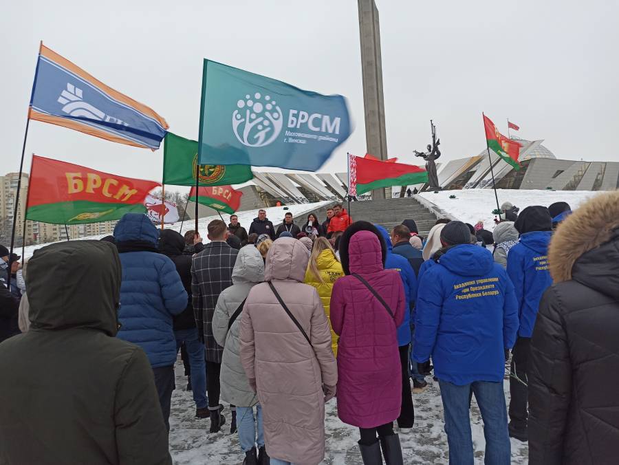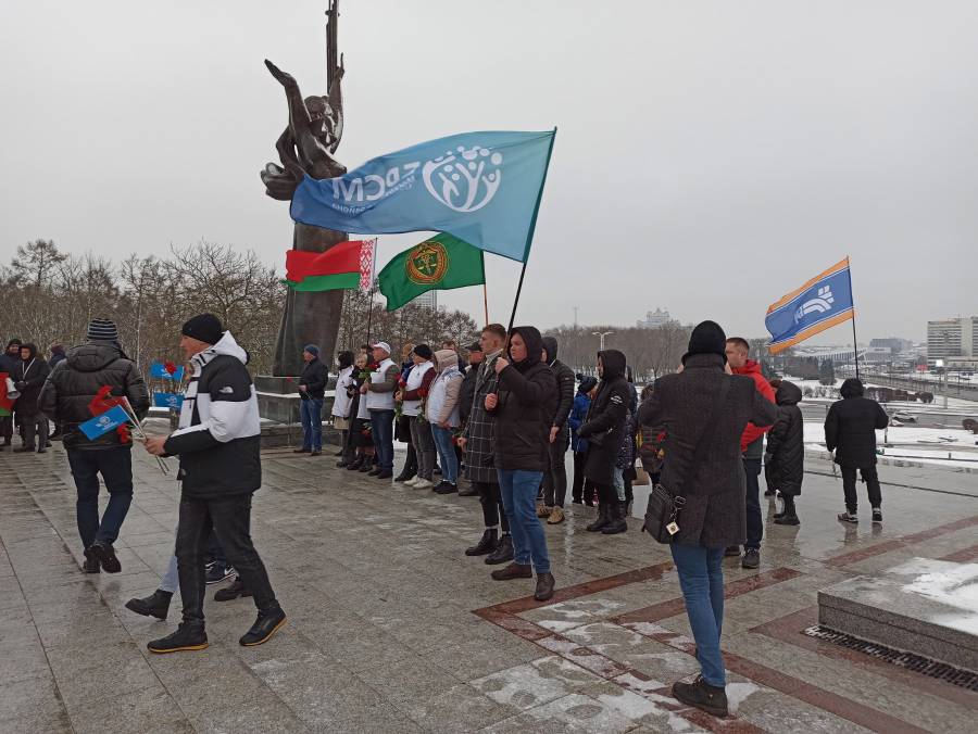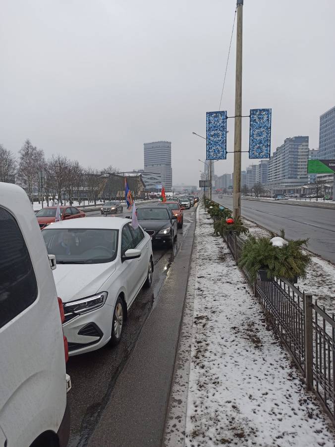 Метель не нарушила планы представителей БРСМ, «Белой Руси» и объединения «Патриоты Беларуси». Всего в колонну выстроилось более 50 машин. По дороге несколько остановок. Знаковая – у стелы «Минск – город-герой». Там прошла церемония возложения цветов к обелиску. Участники автопробега почтили память людей, которые защищали и освобождали белорусскую столицу. Далее участники автопробега переместились на Олимпик Арену чтобы поддержать Президентский спортивный клуб в рамках хоккейного матча команды Президента и Могилевской области, продемонстрировав приверженность здоровому образу жизни.